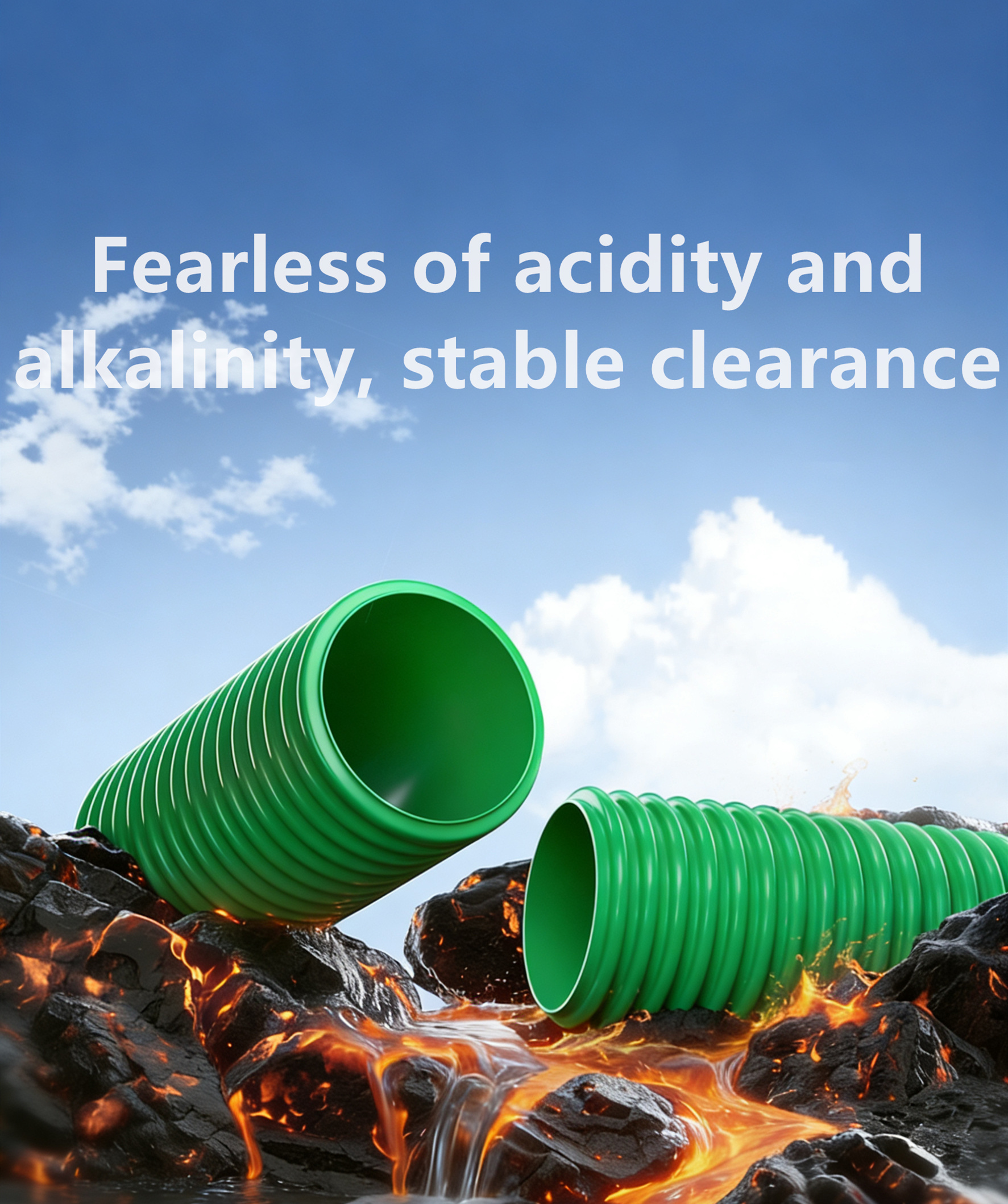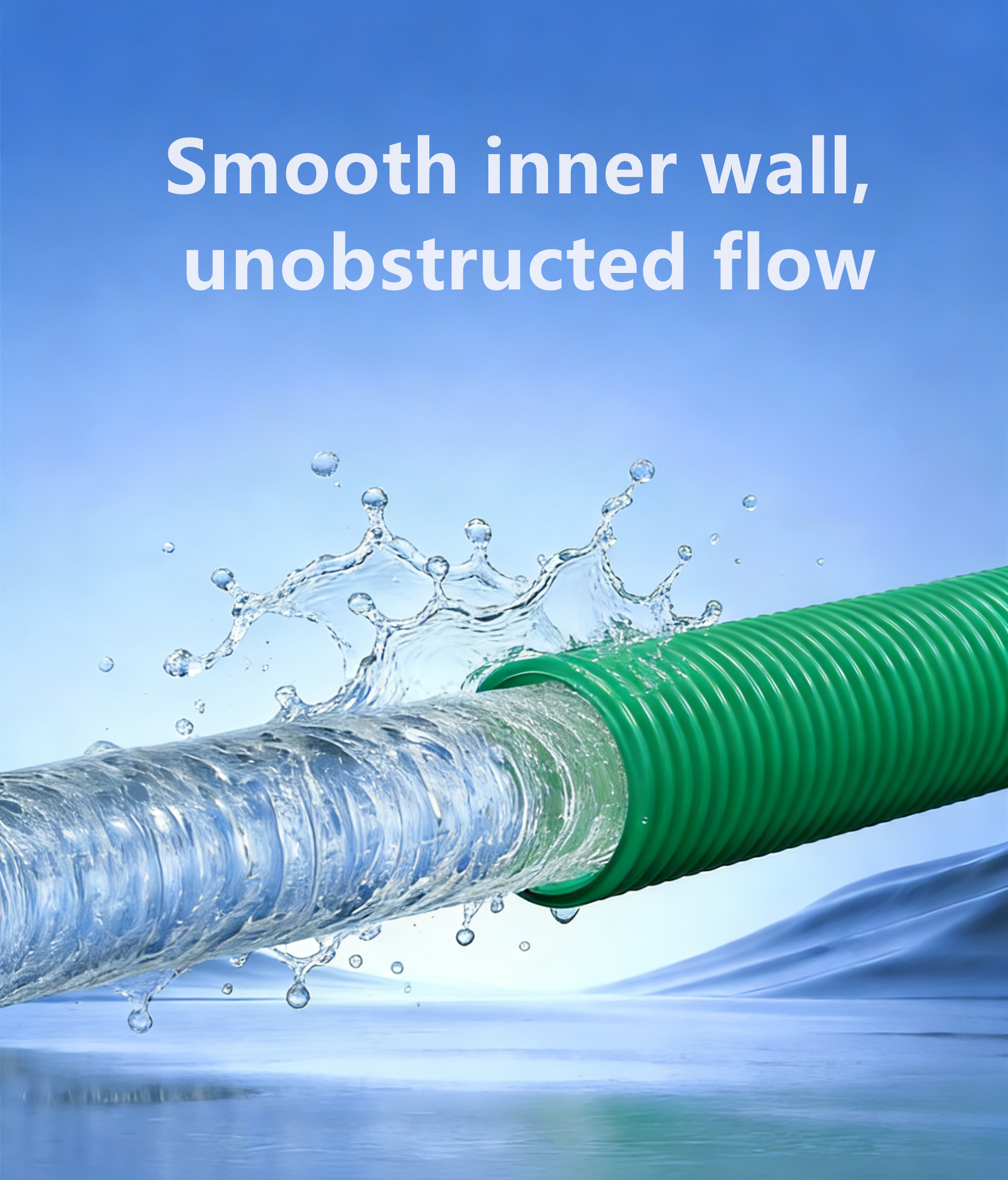 Using a special formula of polyethylene blended polyvinyl chloride (MPVE), the high toughness of polyethylene and the high rigidity of polyvinyl chloride are combined, breaking through the limitations of a single material and achieving a ring stiffness level of SN16, achieving higher compressive strength, stronger anti settlement ability, and the ability to withstand ground loads and soil pressure.